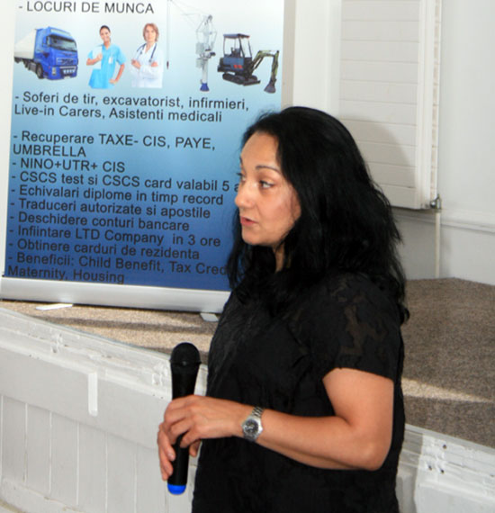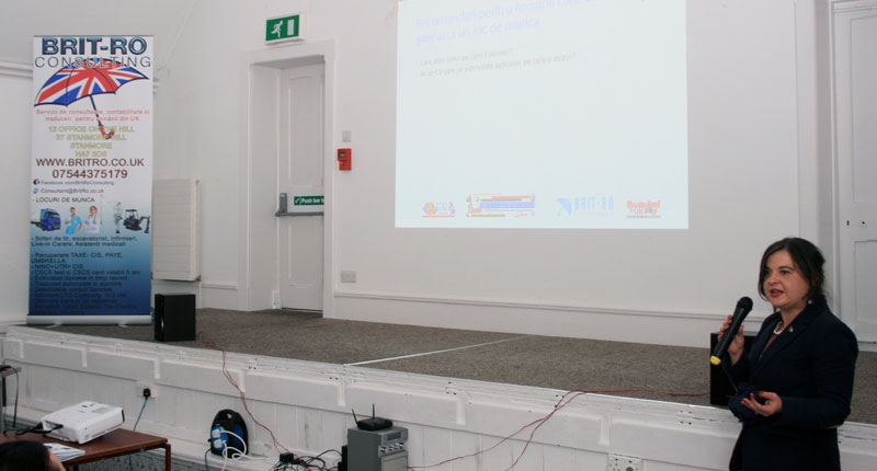 In the opening of the event, Cristina Irimie, editorial director of Romani in UK organisation and CEO of the recruitment and consultancy company Brit-Ro, who sponsored the event, thanked the guests and speakers for the support offered in making the seminar possible.