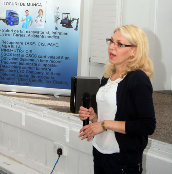 Cristina Irimie, editorial director of Romani in UK organisation (owner of www.romani.co.uk, the online publication Roman in UK, Ghidul Romanului in UK), explained the steps to be followed to secure a good job, the role of a good CV in securing a job, how to act at a job interview, cultural differences.