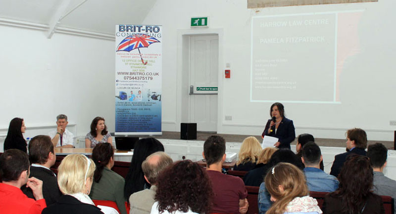 Harrow Law Centre's director spoke to the audience about the services provided by a Law Centre free of charge which are of interest to European citizens, mentioning the rights Romanians have and might not be aware of. Pamela Fitzpatrick explained to the Romanians present at the seminar the importance of having a good representation in cases in which their rights they are entitled to are refused and that the services offered by Harrow Law Centre are free of charge.